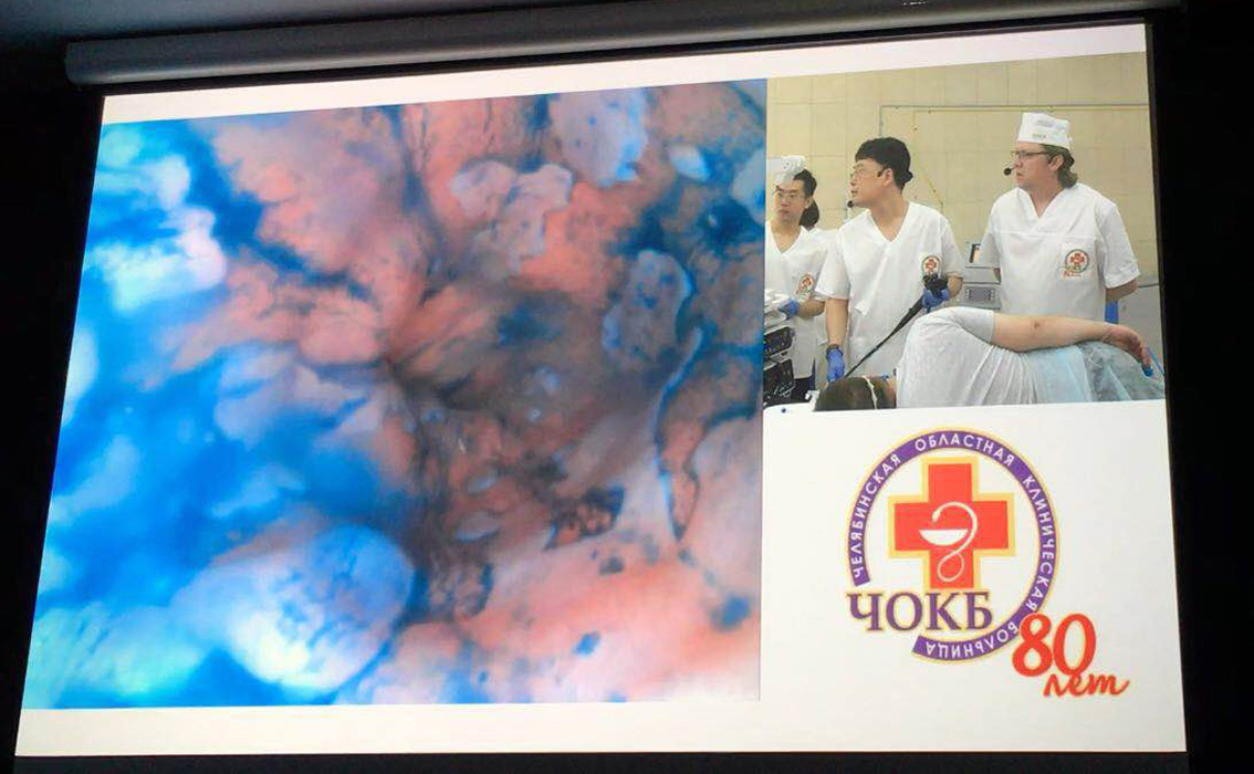 除內(nèi)鏡前沿知識分享外,大會還安排李鵬主任在車里雅賓斯克州立醫(yī)院進行一例Barrett食管病例手術(shù),并通過多媒體向會議現(xiàn)場實時轉(zhuǎn)播,以更好的進行中俄雙方學(xué)術(shù)交流。