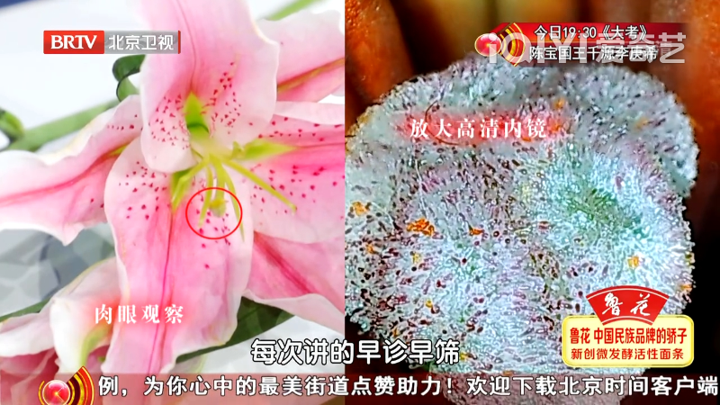 節(jié)目中利用高清放大內(nèi)鏡觀察到的細(xì)致圖像(圖片來(lái)源于北京衛(wèi)視)