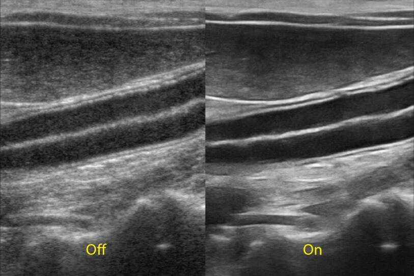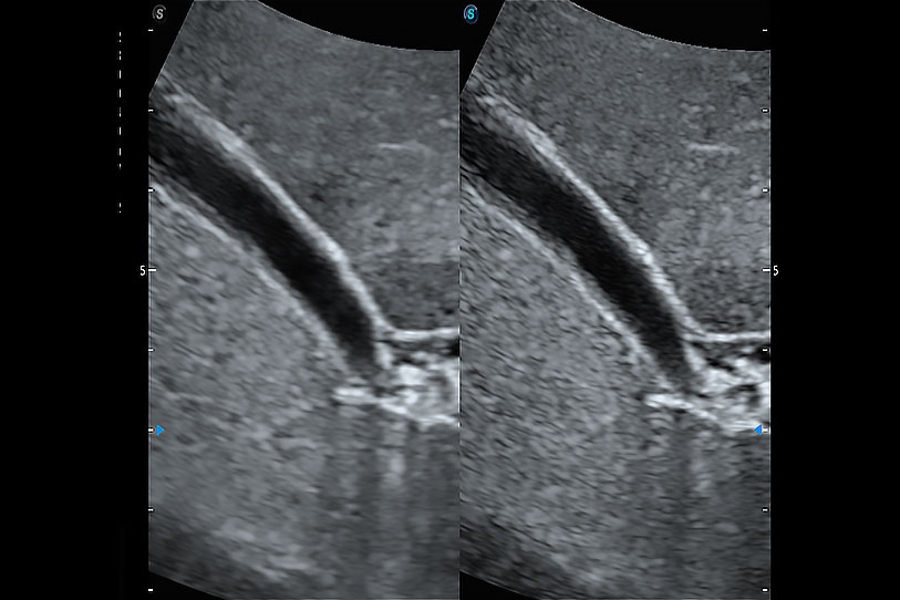 ProPet 70 進(jìn)一步提升了微米成像算法,更加注重對基礎(chǔ)原始圖像的還原和保留,在有效減少斑點(diǎn)噪聲、增強(qiáng)組織邊界顯示的同時,避免過度優(yōu)化丟失真實(shí)的解剖信息。