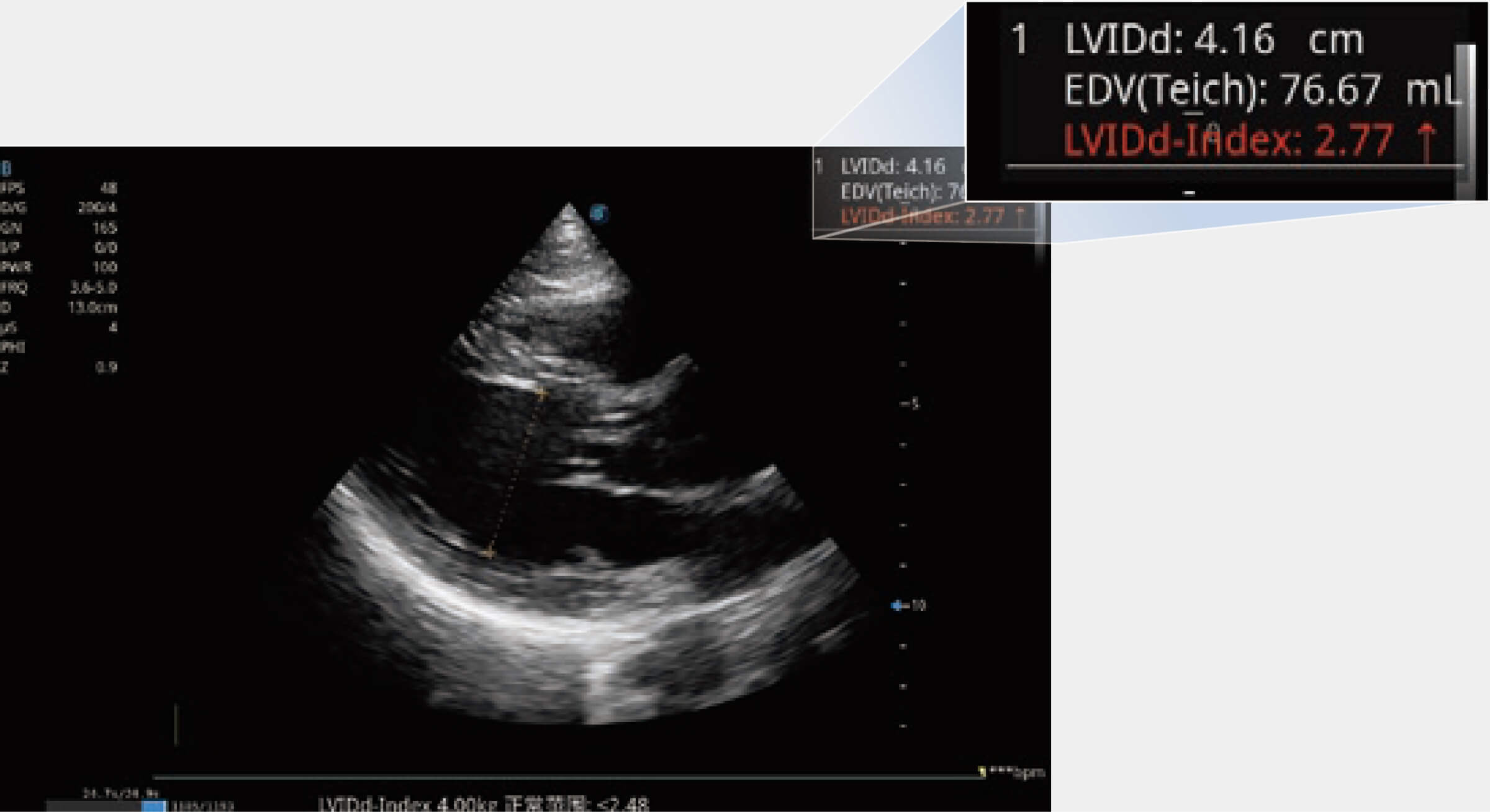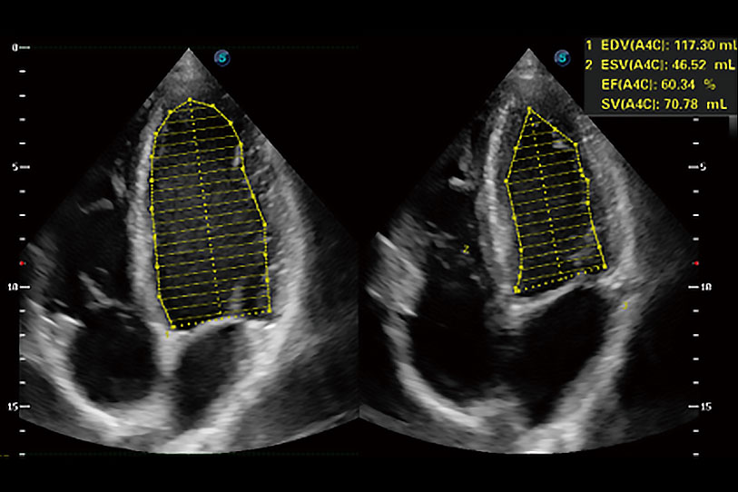 能夠基于左心室壁追蹤和辛普森法,自動計算射血分?jǐn)?shù),支持多個可移動點(diǎn)描跡,與手動測量相比,極大節(jié)省了動物醫(yī)生的時間和精力。