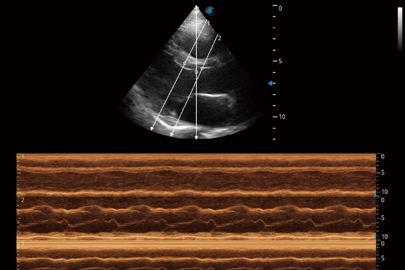 通過360度任意調(diào)節(jié)3條M型取樣線,在同一心動周期上觀察心臟不同位置的運(yùn)動曲線,得到準(zhǔn)確的心功能測量數(shù)據(jù),有效評估心肌運(yùn)動及左心室功能。