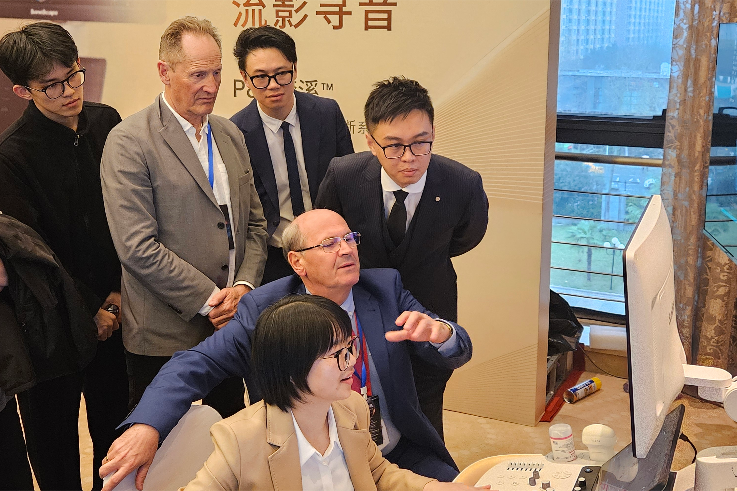 世界醫(yī)學(xué)與生物學(xué)超聲聯(lián)合大會現(xiàn)任主席Professor. Ioan Sporea先生、世界醫(yī)學(xué)與生物學(xué)超聲聯(lián)合大會前主席Professor. Christian Pállson Nolsøe先生和世界醫(yī)學(xué)與生物學(xué)超聲聯(lián)合大會總秘書長Lynne Rudd女士蒞臨現(xiàn)場,參加論壇并品鑒夢溪P80,對其展現(xiàn)的卓越性能和前沿技術(shù)表示出極大興趣,期待共同為全球醫(yī)療健康事業(yè)的發(fā)展貢獻更多智慧和力量。